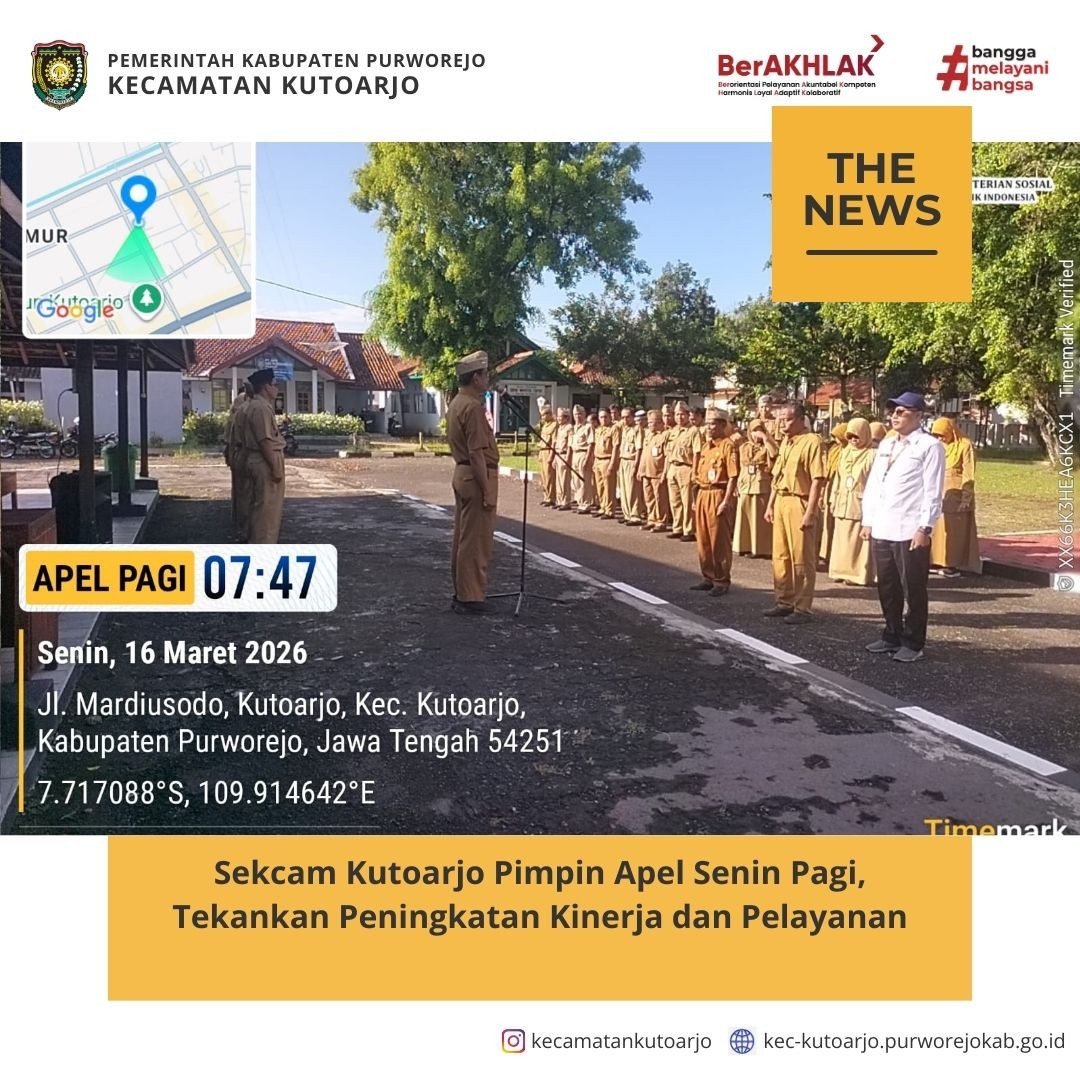 - Sekcam Kutoarjo Pimpin Apel Senin Pagi, Tekankan Peningkatan Kinerja dan Pelayanan