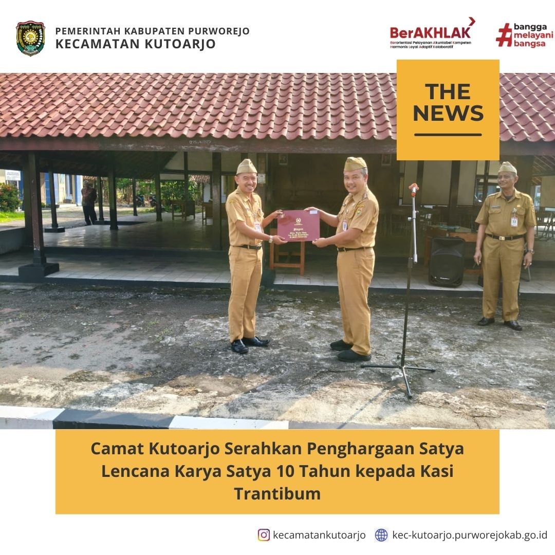 - Camat Kutoarjo Serahkan Penghargaan Satya Lencana Karya Satya 10 Tahun kepada Kasi Trantibum