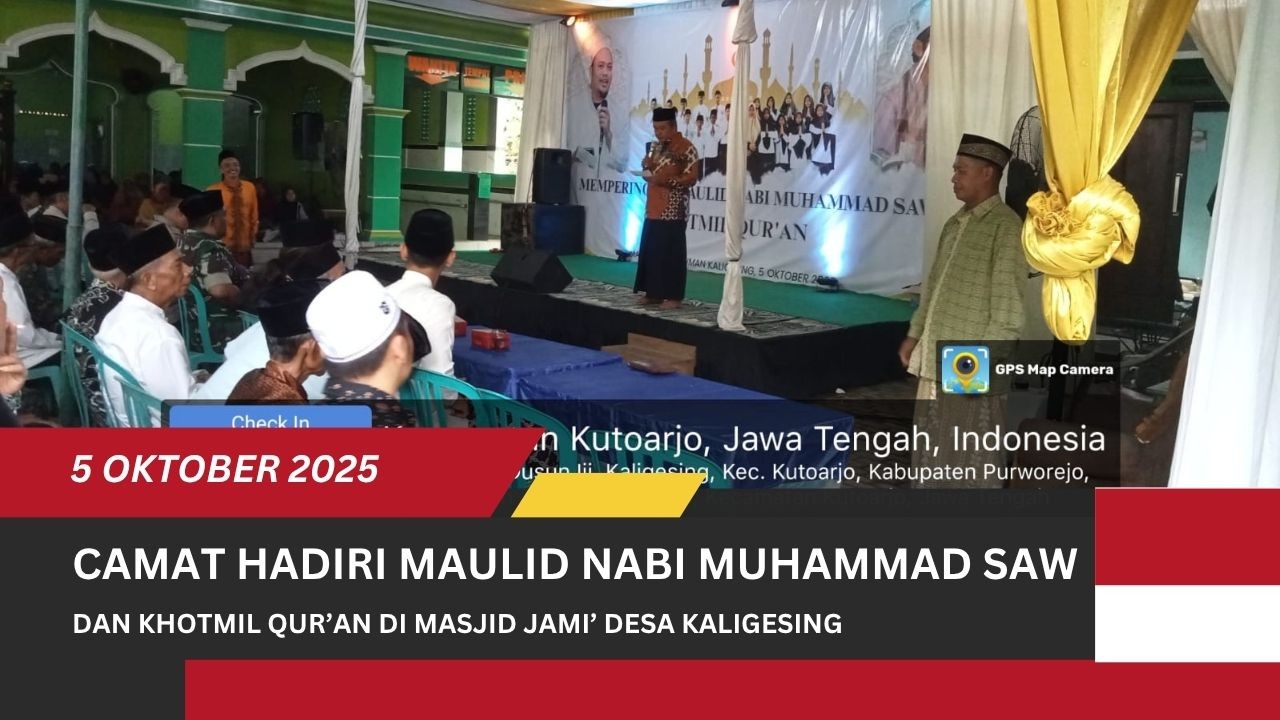 - Camat Kutoarjo Hadiri Peringatan Maulid Nabi Muhammad SAW dan Khotmil Qur’an di Masjid Jami Desa Kaligesing