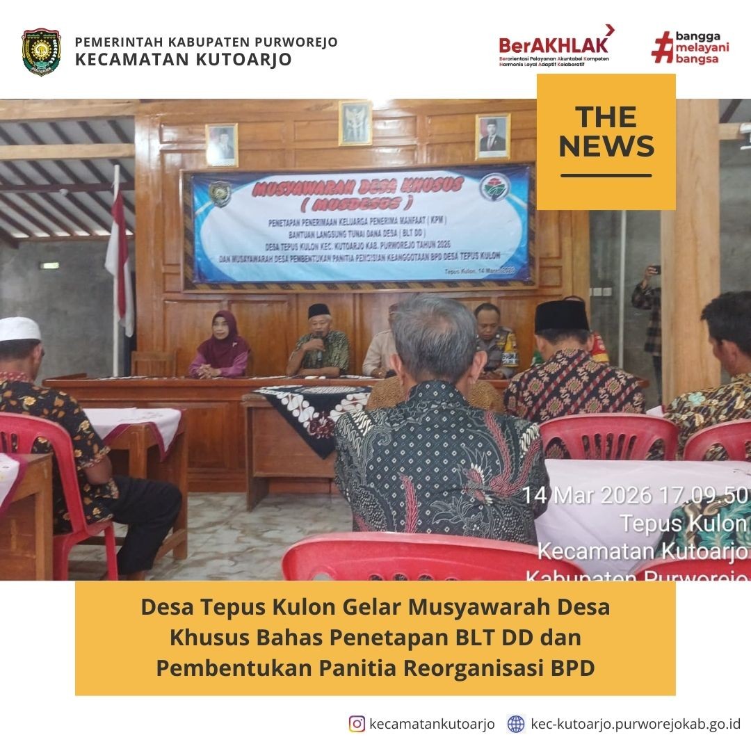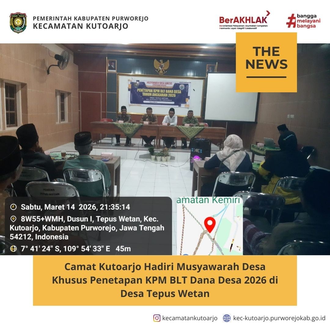 - Camat Kutoarjo Hadiri Musyawarah Desa Khusus Penetapan KPM BLT Dana Desa 2026 di Desa Tepus Wetan